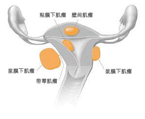 - 帶带肌瘤 (Peduculated fibroid)- 生长在子宫壁的上面或长在子宫腔內并长出茎。